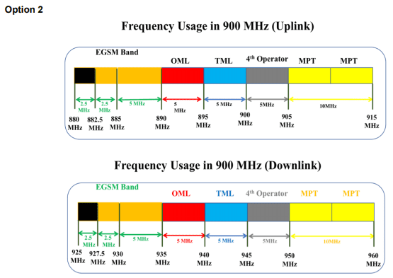 In total, 2x10Mhz in 900mhz will be made available next year. Saying that, PTD may decide to keep 2.5mhz as a guard band to avoid interference. The remaining spectrum of 2×7.5mhz could be auctioned in two flavors. First option could be 3 allocations of 2×2.5mhz, second option would be one allocation of 2×2.5Mhz and one of 2x5mhz.